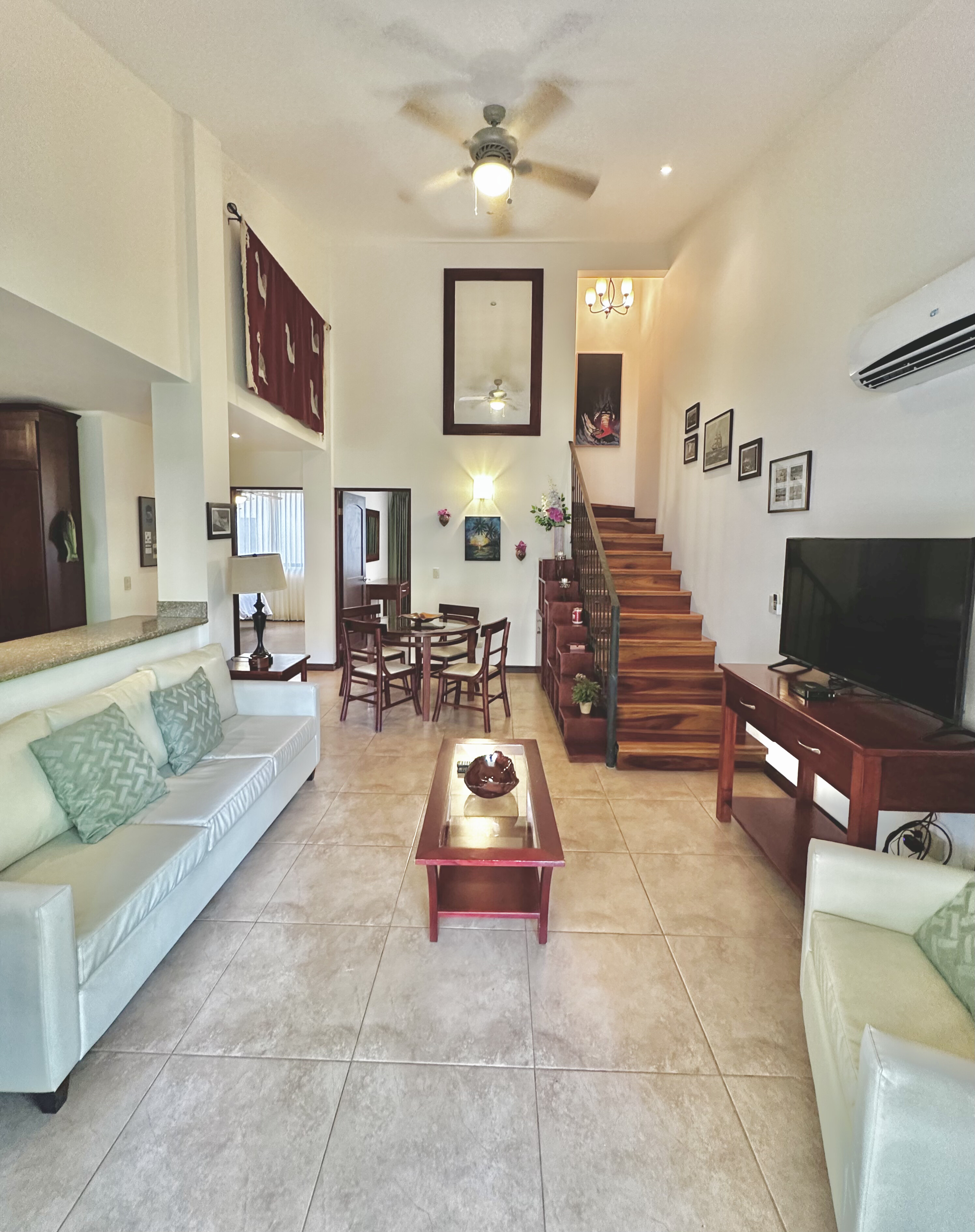 Beautiful Newily built home close to Playas del Coco and Playa Ocotal Welcome to this beautiful, newly built 3-bedroom home located in the exclusive Coco Bay community complex in Playas del Coco. Perfect for families or groups of friends, this property offers spacious accommodations with one bedroom featuring two queen beds, a second bedroom with a double bed, and a full bathroom to share. The master bedroom with a king bed and an en-suite bathroom for added privacy and comfort. All rooms are equipped with A/C for a cool environment and easy access to internet/wifi. Enjoy quality time in the cozy living room, which includes a dining table ideal for family meals or gatherings. The fully equipped kitchen includes all the cooking appliances you'll need. Step outside to relax in the pool area or simply enjoy some time at the terrace surrounded by a beautiful garden. The home also offers parking for two cars under a roof for added convenience and additionally at least 2 more cars. Just a short 5-minute drive to the vibrant Playas del Coco for a variety of restaurants and grocery stores, or 5 minutes to Playa Ocotal for beach access. The Guanacaste airport is approximately an hour away by car. For your convenience, a rental car is recommended to fully enjoy the area. Playas del Coco and its surrounding areas offer a wide variety of activities to enjoy, during your stay just a short drive away and others a bit longer distance depending on the location. Right at the beach, you can take part in exciting adventures like surfing, fishing, ATV rides, horseback riding and others. The area is also fortunate to be close to majestic volcanoes, offering unique experiences such as relaxing in hot springs, exploring lush natural environments with waterfalls, hiking, and canopy tours, and watching beautiful local wildlife. Don't miss out on immersing yourself in the rich Costa Rican culture by taking part in chocolate and coffee tours, where you can learn about the area's flavorful traditions. Some beaches near Playas del Coco, Costa Rica, are: Playa Hermosa: Located 4 km from Playas del Coco. Playa Ocotal: Located south of Playas del Coco, known for being a place to practice snorkeling and sport fishing. Playa Tinoco: Located about 1.5-2 km from Playas del Coco. Playa Conchal: Located 21 km from Playas del Coco. Playa Tamarindo: Located 32 km from Playas del Coco. Playa Avellana: Located 38 km from Playas del Coco. Other nearby beaches to Playas del Coco are as follows Playa Calzón de Pobre, Playa Virador, Playa Arenillas, Playa Panamá, and Playa Gringo in the Peninsula of Papagayo. PETS ALLOWED: This home allows only 1 pet under 10 kg (22 lb). Please provide additional information such as breed, age and weight for previous approval. Also, it requires a Pet Deposit which will be returned if no damage is reported. IMPORTANT NOTICE: Your safety is our top priority. Please note, we have security cameras installed on the exterior of the property, monitoring only outdoor areas. As the community continues to develop, please note there is currently a construction near this property and it is out of our hands to control their work during the day.