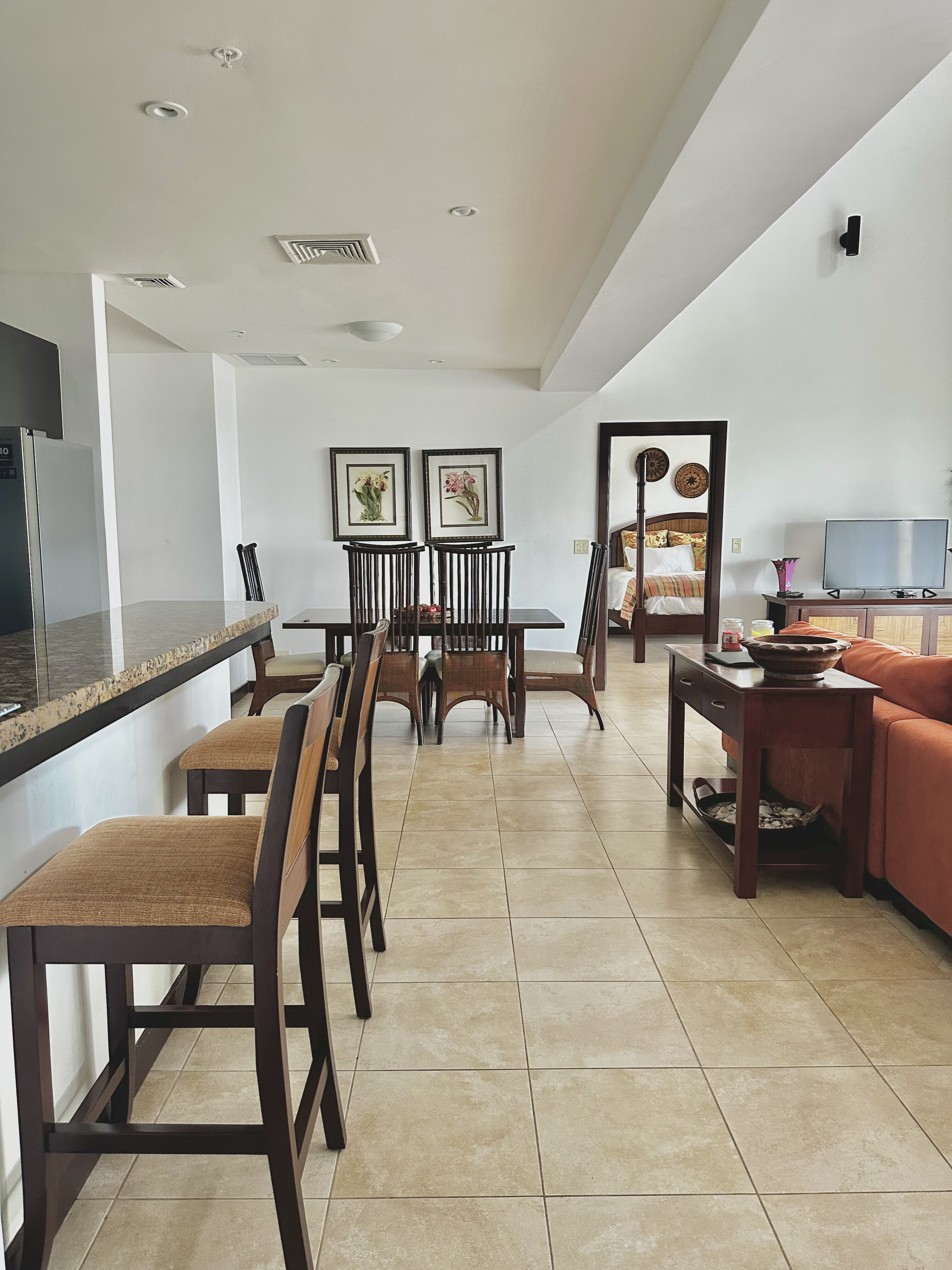El Mirador is a 2,120 sqft penthouse condo with 3 bedrooms and 3 full baths. Two King bed master suites and one queen bedroom with full bath across the hall. All with expansive oceanviews and balconies. The elevated ceiling grand room opens to a balcony with a dining table for 6, couch, coffee table and BBQ. El Mirador is the highest and only unit on the fifth floor of the Segovia condominiums located in the gated community of Coco Bay Estates. The main living area features an open floor plan - kitchen, living room and dining area all flow together, and extend to the covered lanai to enjoy the ocean views. El Mirador is professionally decorated. A dining table which seats up to 8 people with additional seating located at the granite breakfast bar. The master baths have walk in closets, double sinks and walk in tiled showers. One master bath also has a jacuzzi bath. The full bath across from the double bedroom also has a walk in tiled shower. El Mirador is located in Playas Del Coco, just twenty minutes from Liberia (Daniel Oduber) International Airport - (LIR) and just minutes from dining, attractions and nightlife! Our Guanacaste region boasts warm weather year round, close proximity to several beautiful beaches, national parks and reserves and local attractions. For our adventurous guests, our concierge can suggest a full array of tours and activities from wildlife viewing by boat to swinging through the treetops on a canopy tour…or if you prefer to relax, try our wonderful therapists for an in room massage! We can arrange fishing, snorkeling, scuba, horseback riding, river rafting… Just about anything you can imagine! NOTE: This property is managed by Bitzu Homes and rented direclty by the owner. The rates shown in the website are only for reference, this could mean that the actual rental rates may differ, depending on various factors like season, taxes and any additional fees